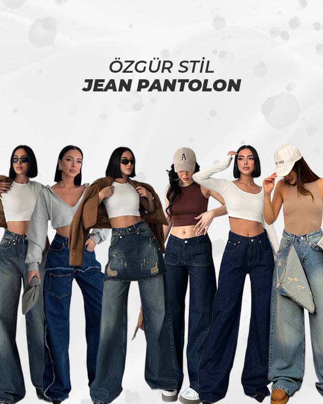 Dikiş Detaylı Geniş Paça Kadın Jean Pantolon